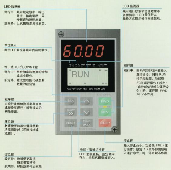 在键盘面板的LCD上能显示和确认变频器的运行状态、输入/输出信号状态和跳闸时的详细数据,由此较易进行异常原因分析和提出对策。